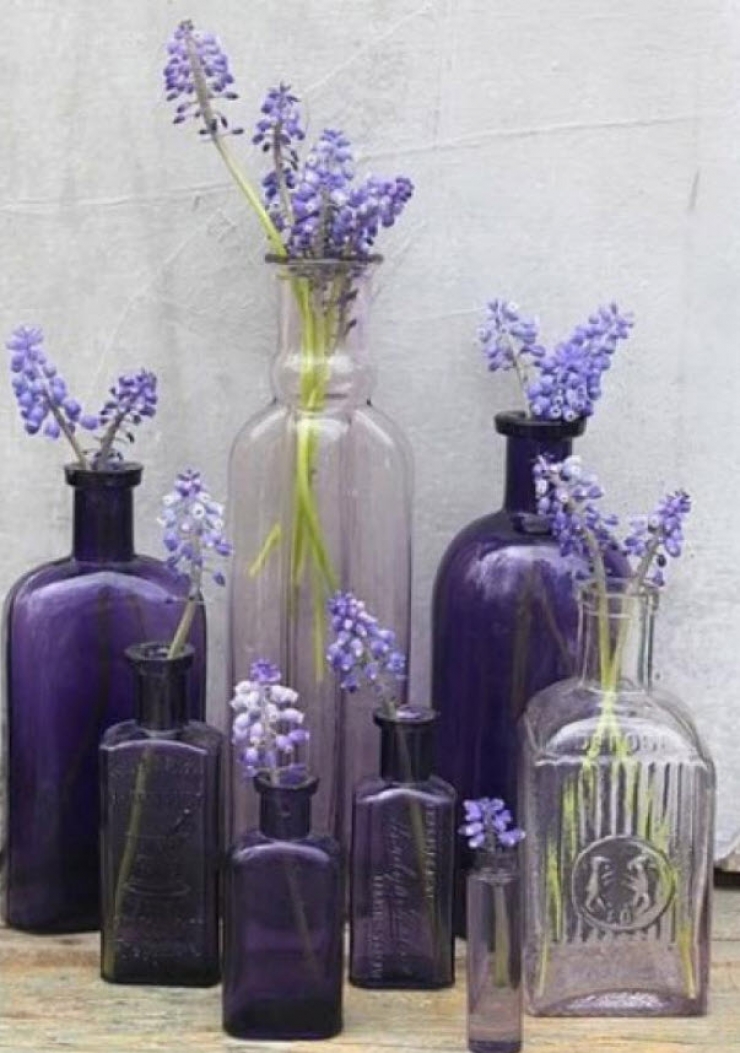 4. Des flacons colorés ou des bouteilles en verre pour y déposer vos fleurs