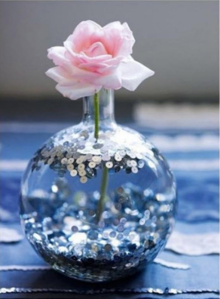 10. Ajoutez de l’eau et des paillettes dans une fiole pour sublimer une rose