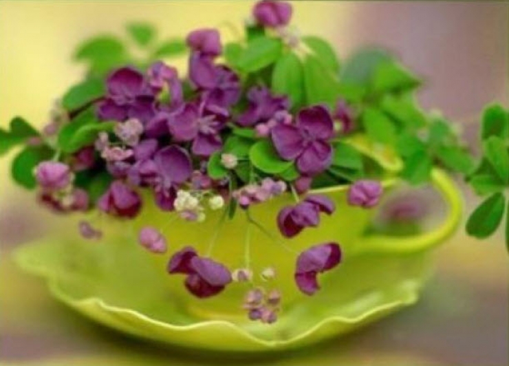 8. Cette fois, c’est une tasse colorée qui est détournée en vase