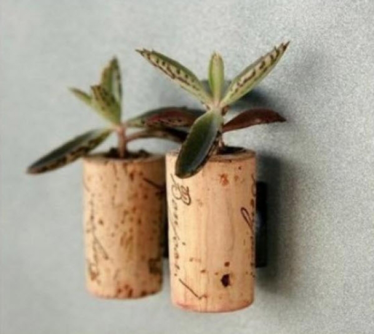 1. Creusez des bouchons en liège afin d’insérer un peu de terre et une plante grasse